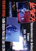 | SLAYER Eurockeennes De Belfort France July 4th 2003 DVD-R ¥ 2800 (税込¥ 2940 )■ フランスのベルフォールで行われている同国最大のロック・フェスティヴァル「Eurockeennes」。その2003年のステージに立ったSLAYERをプロショット収録したコレクターズDVD-R。この時点での新作であった「God Hates Us All」からの"Disciple"に始まりラストの"Raining Blood"まで、新旧織り交ぜた全14曲を鬼神の如く演奏しまくり、息つく暇をも与えてくれないステージングは正に強力の一言!!オフィシャル・リリースにしてもおかしくない程のクオリティーでSLAYER信者は必携です!!ボーナスとして、Paul Bostaphがドラマーを務めていた2000年イタリアでのプロショット・ライヴ5曲を収録。懐かしの名曲"Evil Has No Boundaries"をプレイしているこちらも必見です。NTSC、REGION 0、82MIN。 | |